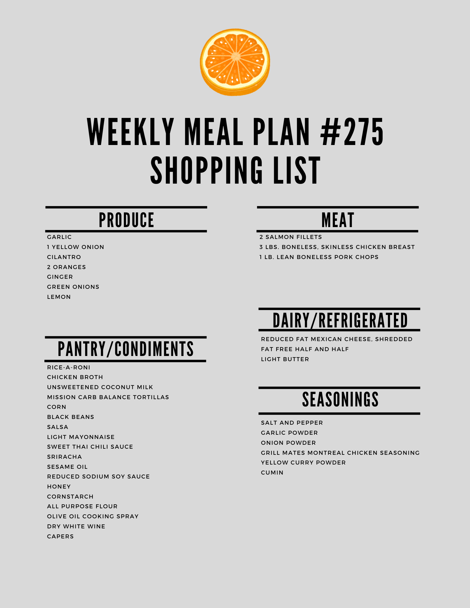 It’s the week #275 meal plan!