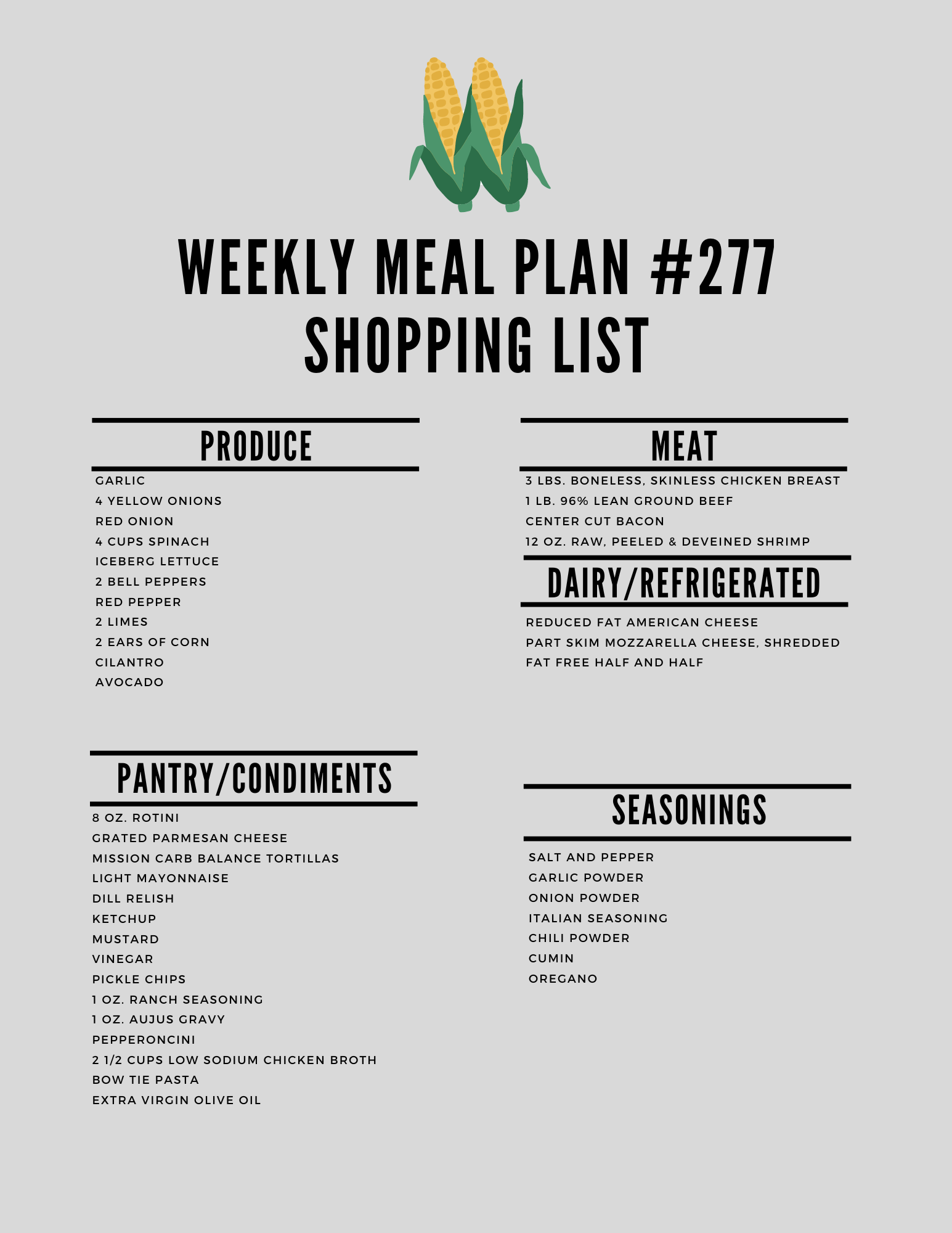 It’s the week #277 meal plan!