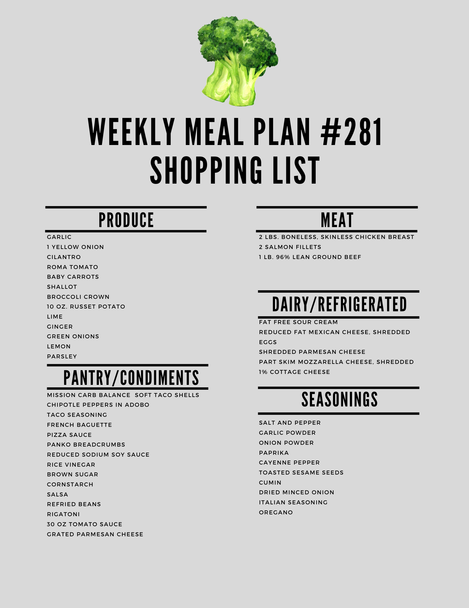 Here is the printable shopping list: