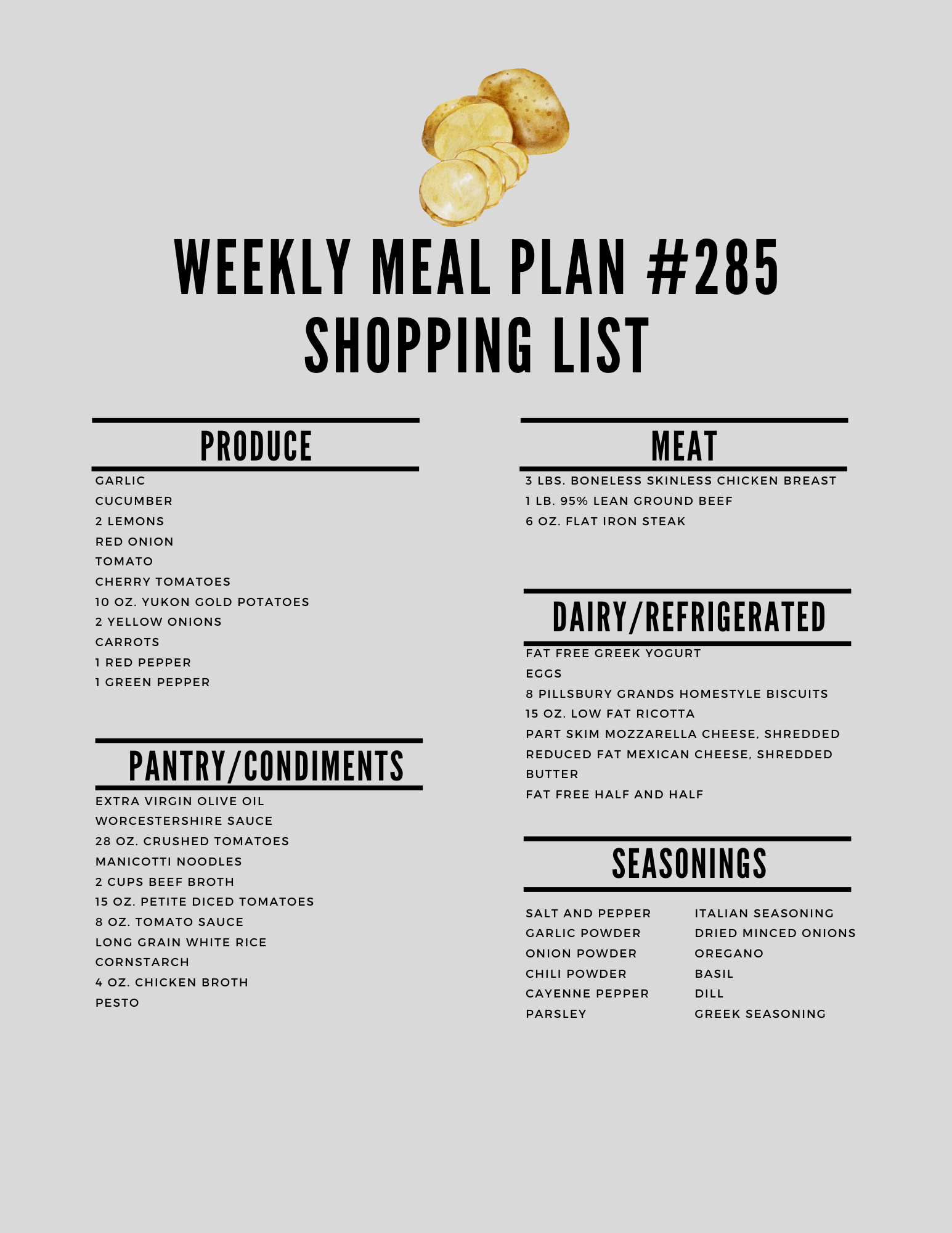It’s the week #285 meal plan!