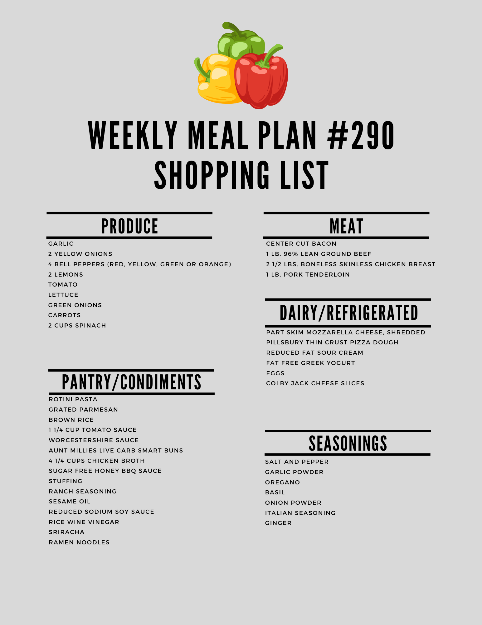 Here is the printable shopping list: