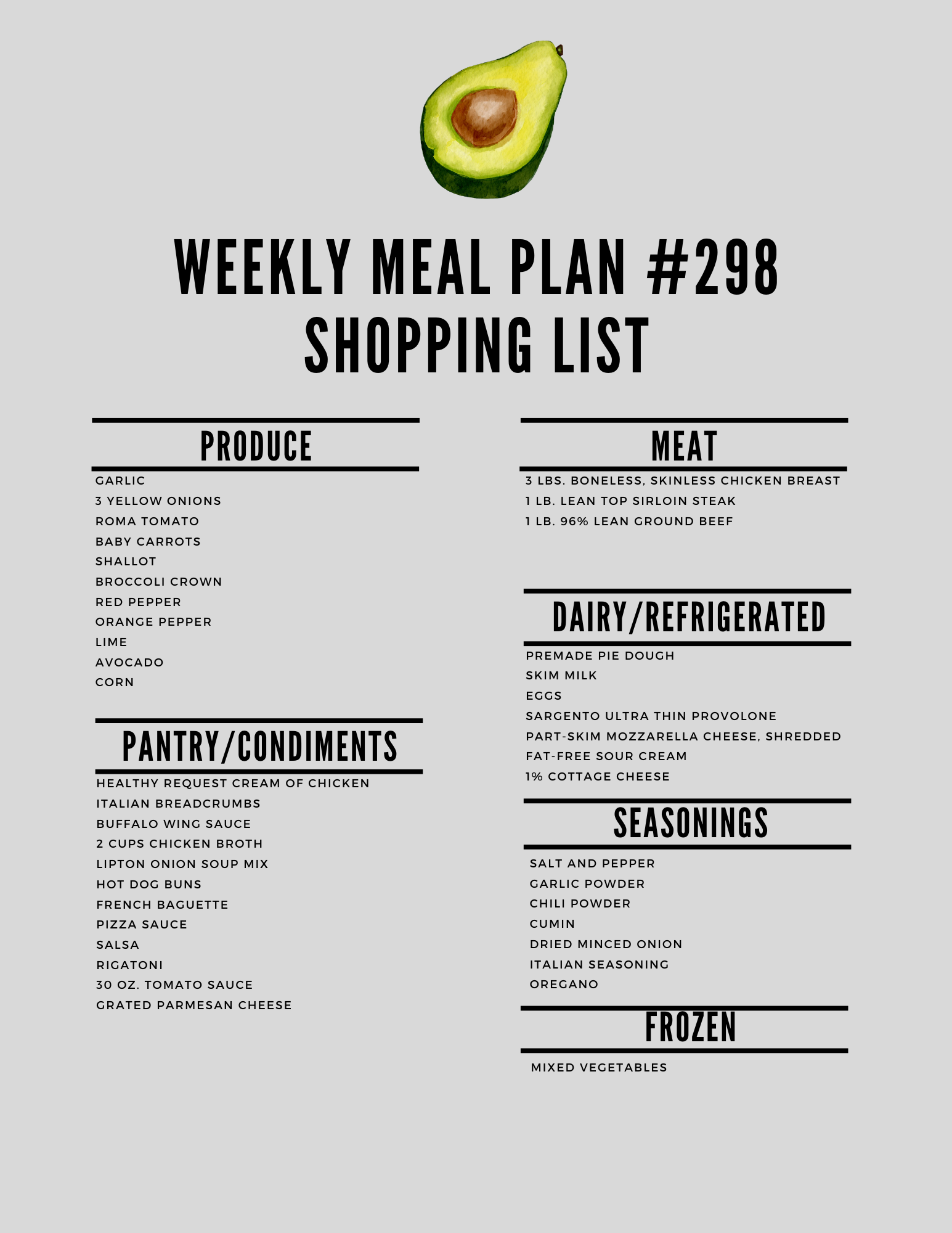 Here is the printable shopping list: