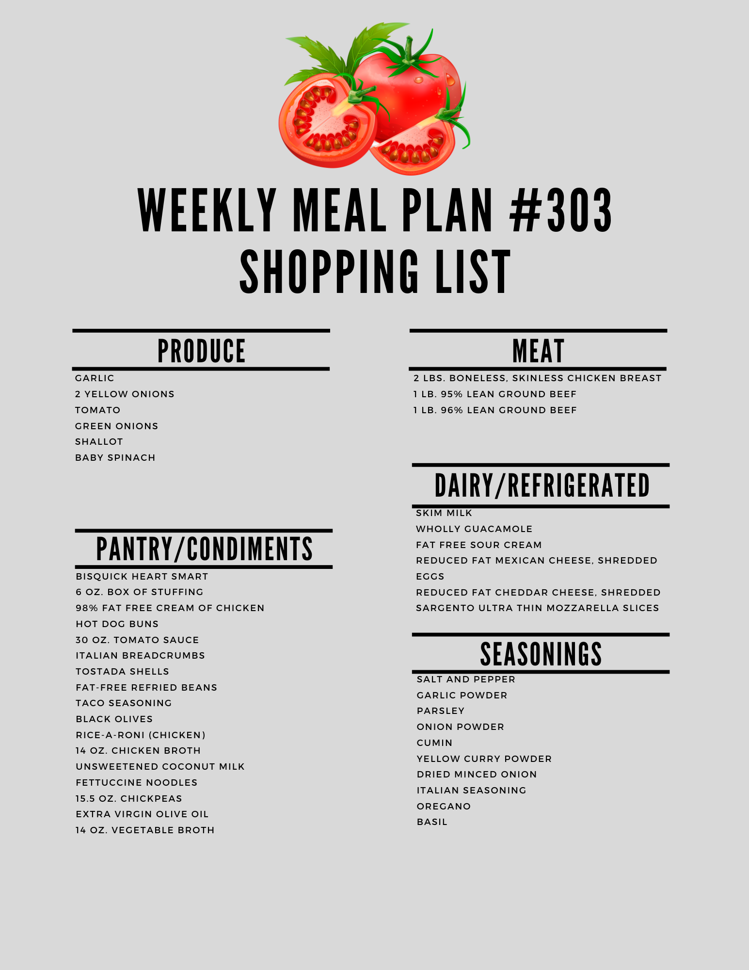 The meal plan below includes six dinner recipes for the week. I left one day open for dining out.