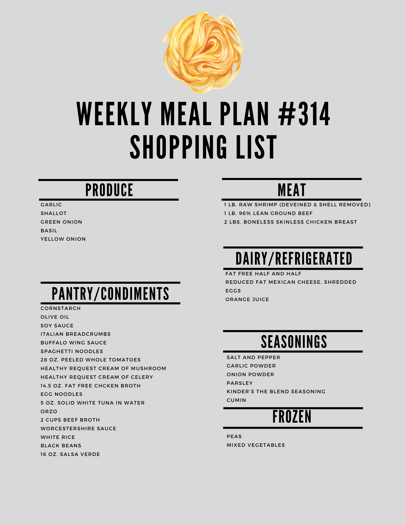 Here is the printable shopping list: