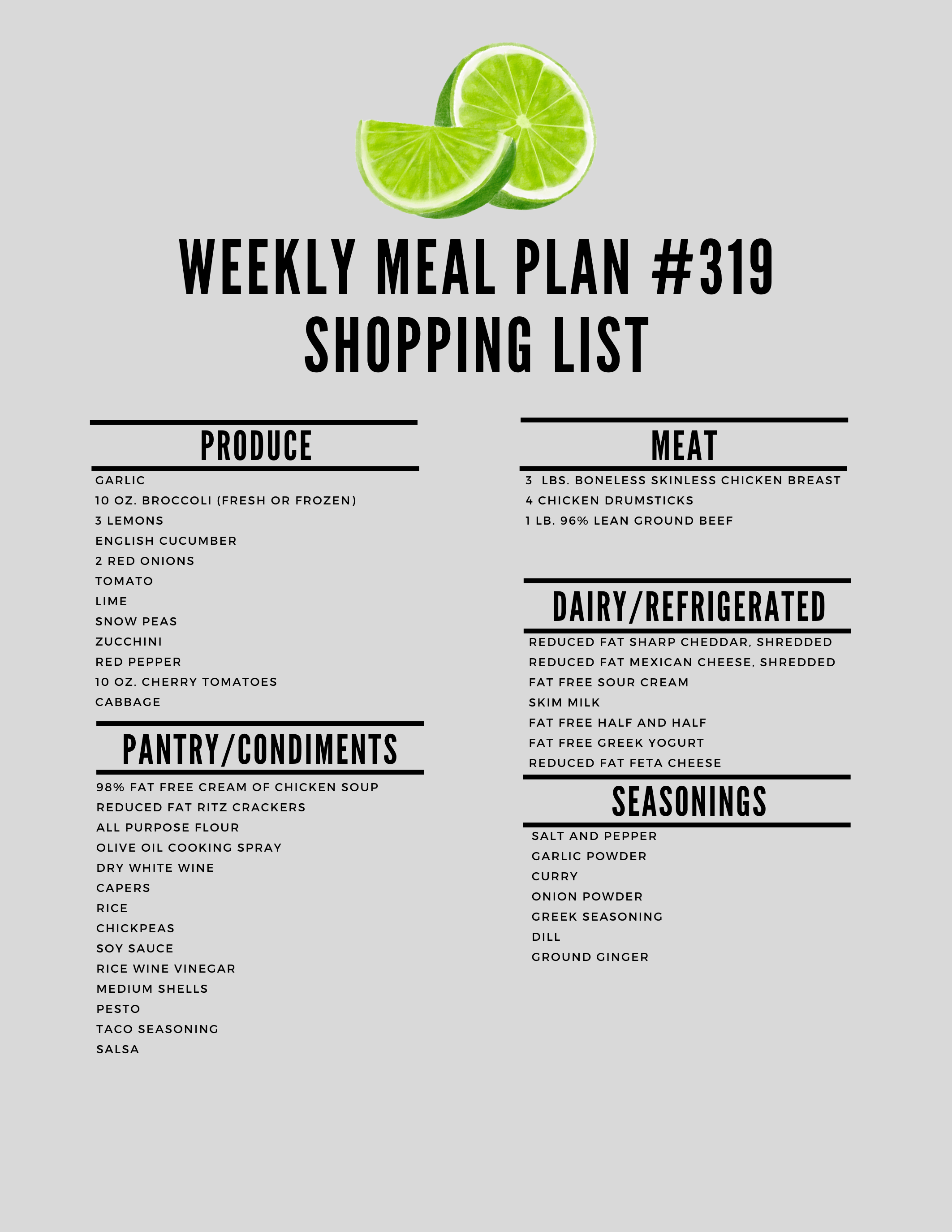 The meal plan below includes six dinner recipes for the week. I left one day open for dining out.