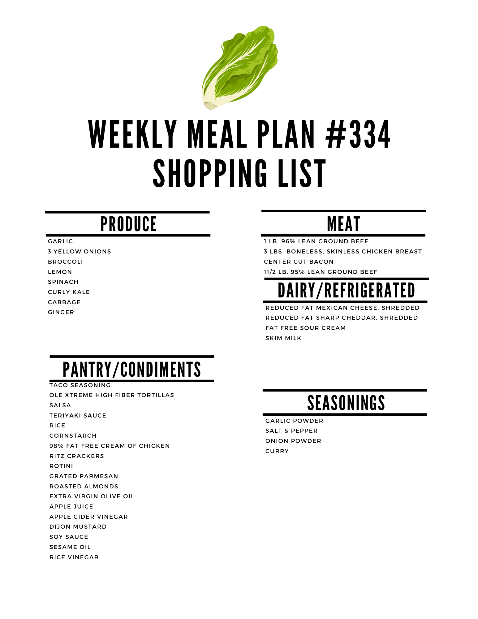 The meal plan below includes six dinner recipes for the week. I left one day open for dining out.