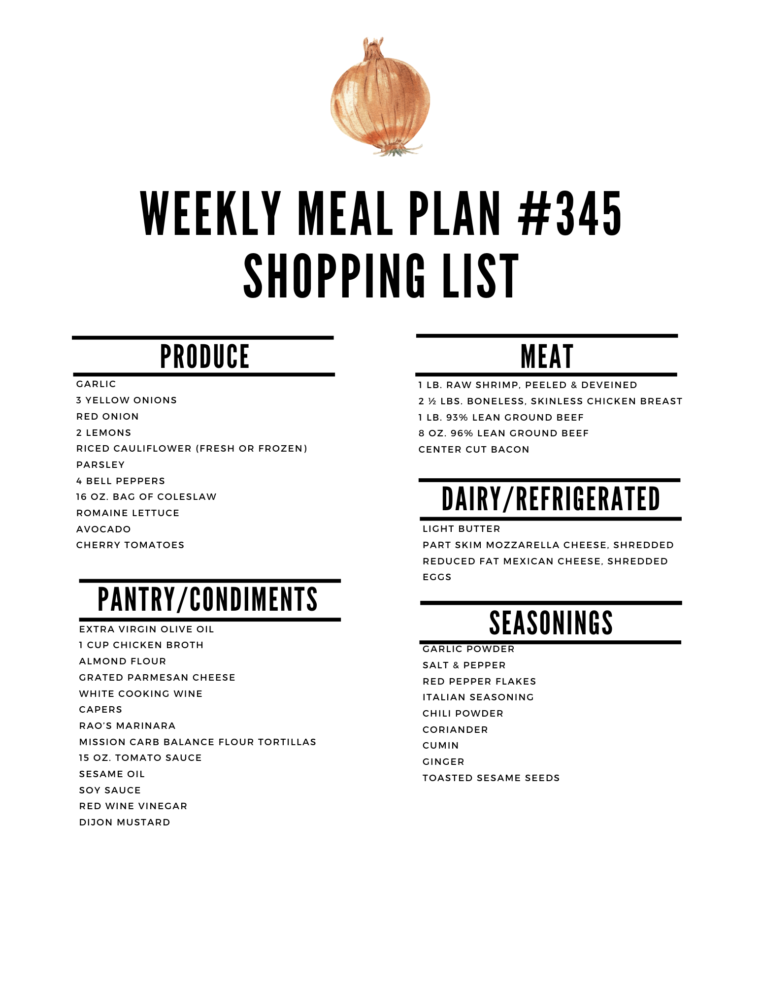 Here is the printable shopping list: