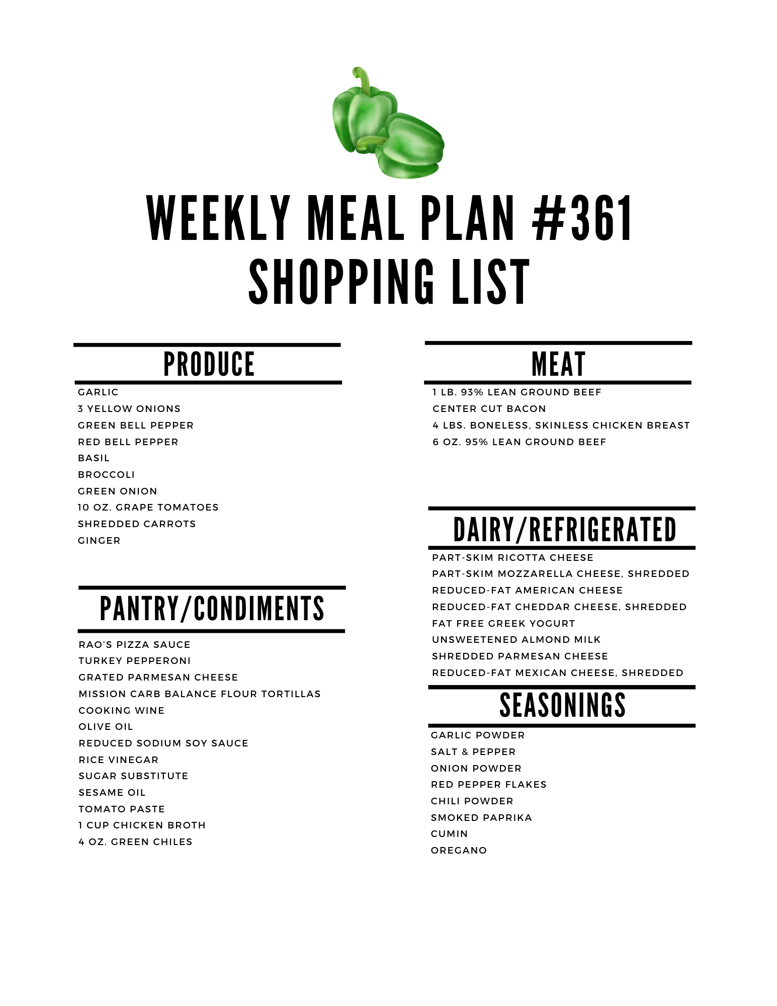 Here is the printable shopping list: