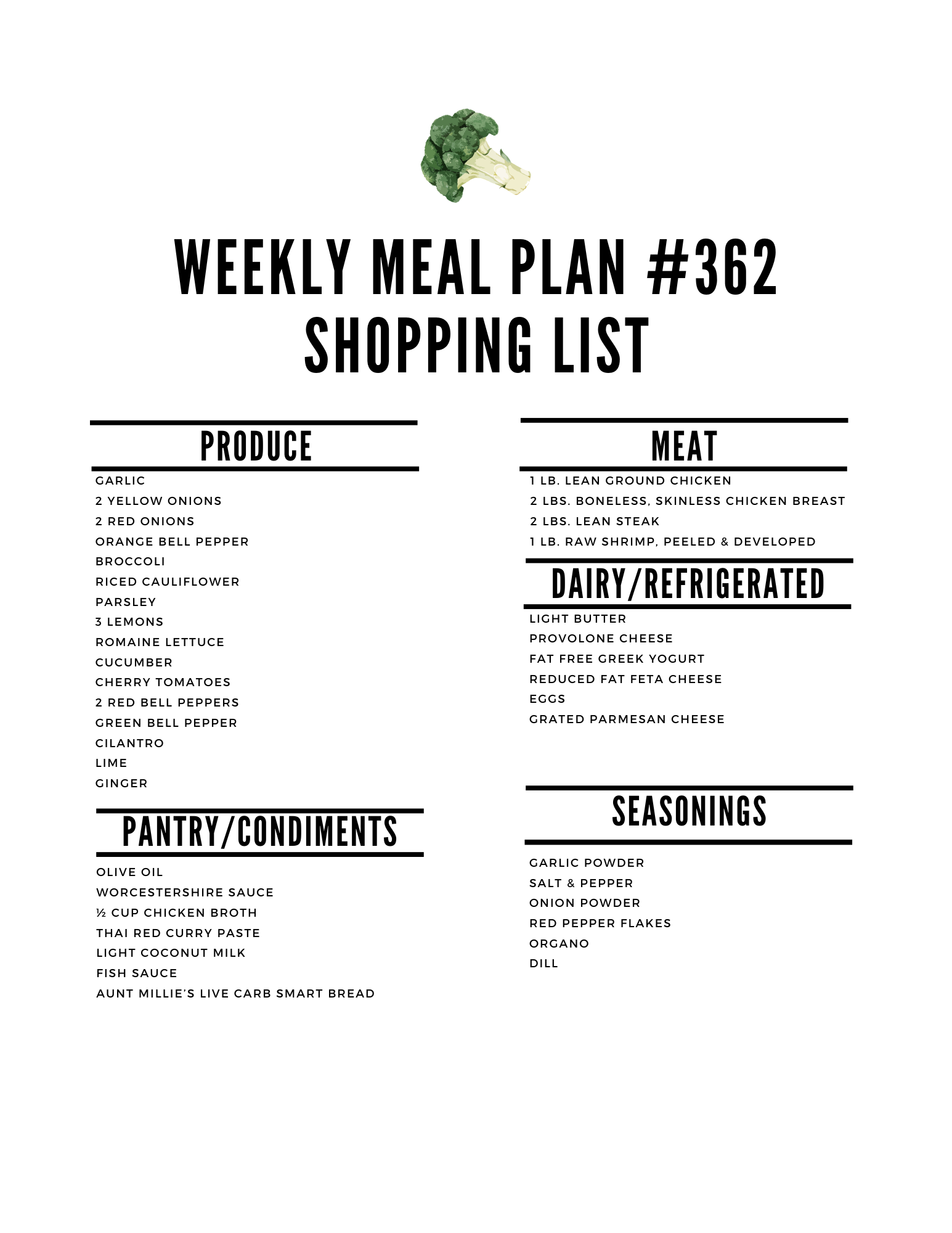 Weekly Meal Plan #363 (Low Carb and Weight Watchers Friendly)